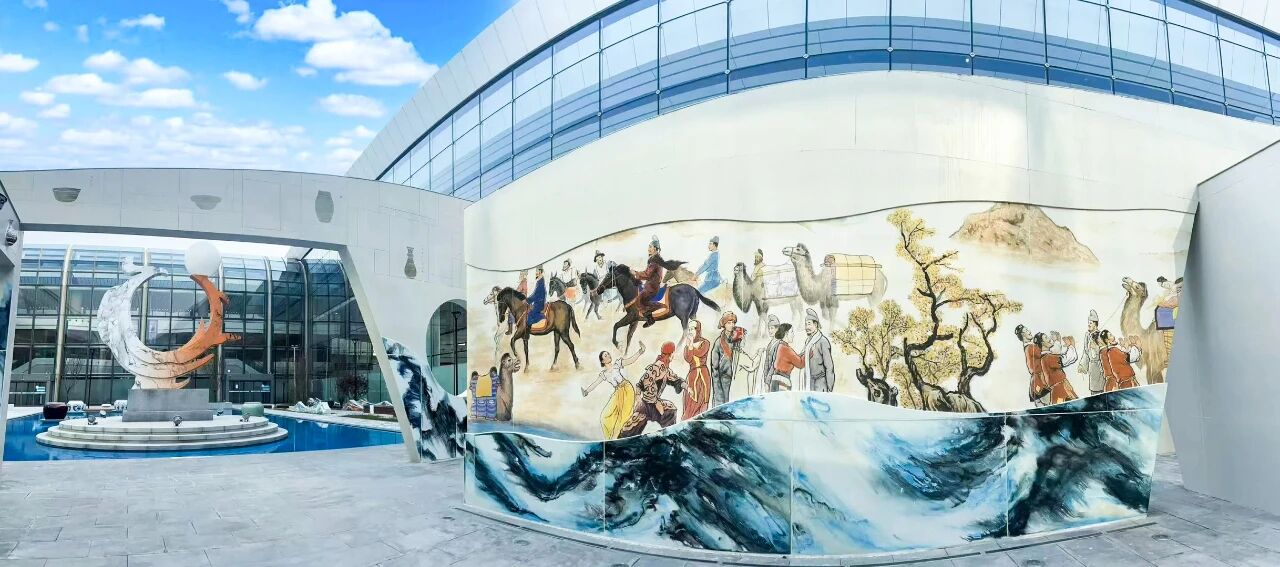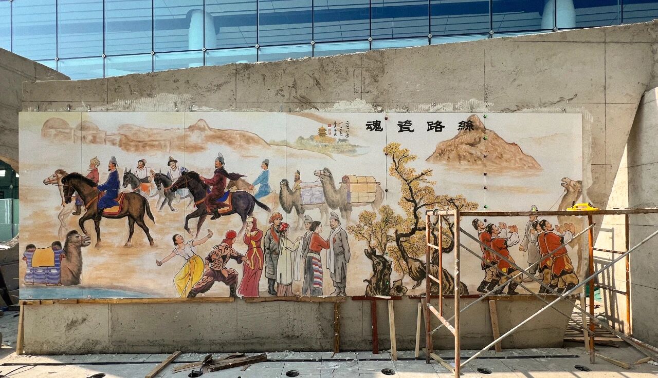 陶藝文化墻墻體上鑲嵌著精致的圓形、方形與異形瓷板。這些瓷板上,大師親自手繪的畫面生動展現(xiàn)了我國陶瓷從誕生到發(fā)展的輝煌歷程,以及各歷史時期的獨特文化風(fēng)貌。它們還描繪了陶瓷沿著絲綢之路傳播,對世界文明產(chǎn)生的深遠影響和卓越貢獻。
