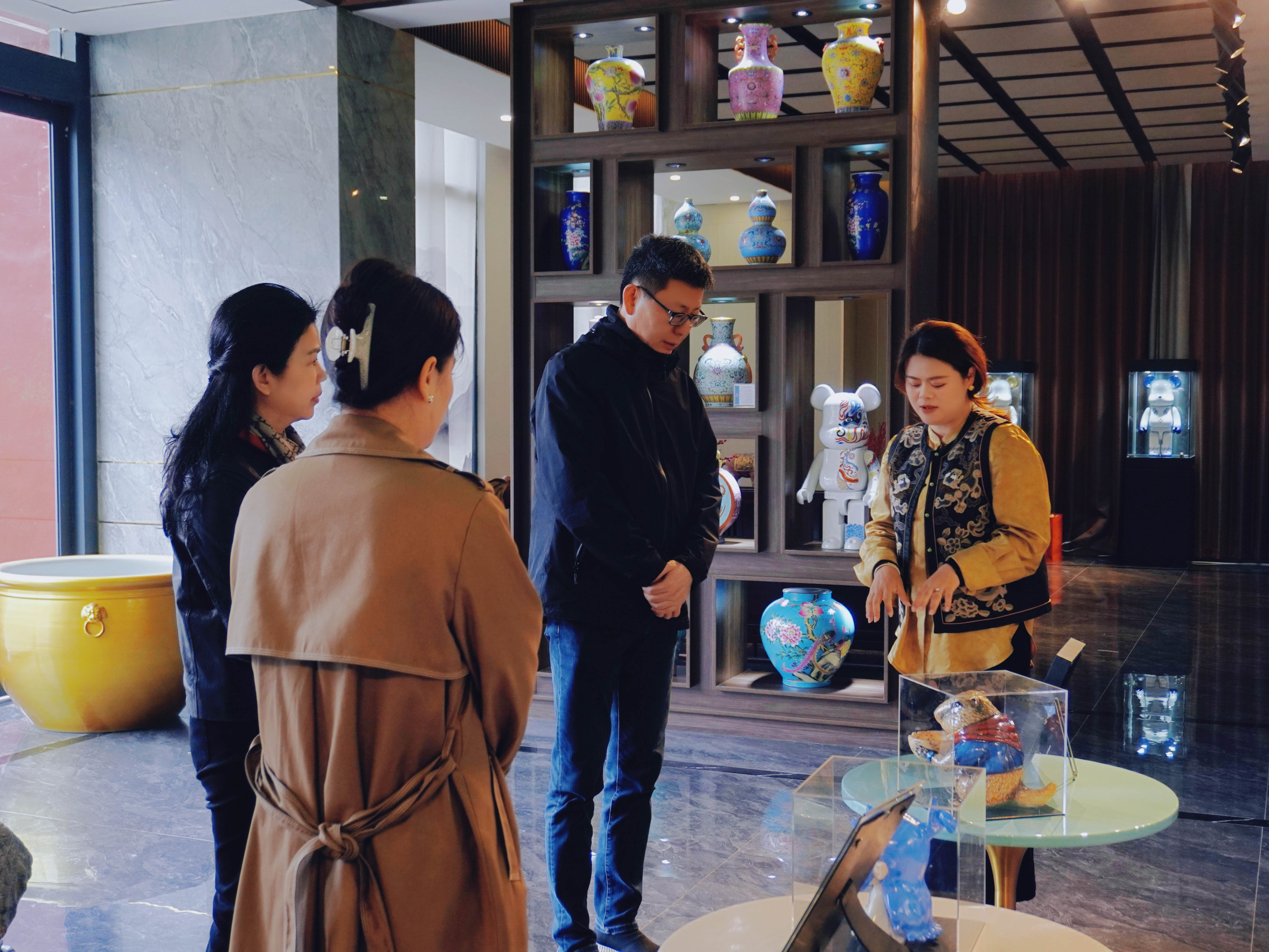 調研期間,羅文軍副市長一行先后深入產品展示區(qū)、生產車間及創(chuàng)意空間,實地察看企業(yè)運營情況、陶瓷產品研發(fā)及企業(yè)品牌建設情況。在產品展示區(qū),公司負責人圍繞國際奢牌長期合作信任、潮玩 IP 形象聯名等核心出口競爭力展開介紹,全面的展示了辰天陶瓷在全球化市場中的品牌影響力與行業(yè)地位。